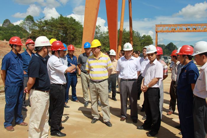 2011年8月3日下午,區(qū)交通運輸廳廳長潘巍一行蒞臨由廣西壯族自治區(qū)公路橋梁工程總公司承建的靖那1標(biāo)施工現(xiàn)場視察工作。