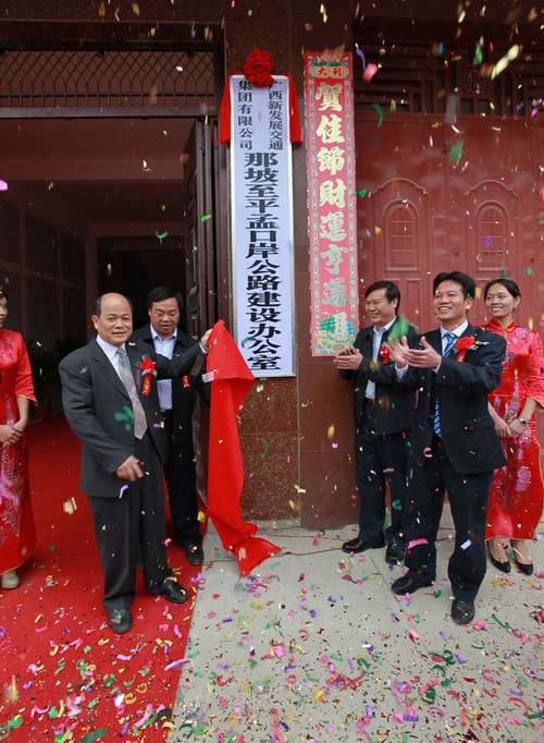 集團(tuán)公司朱堅(jiān)和董事長在儀式上鄭重承諾:廣西新發(fā)展交通集團(tuán)一定秉承“合作共贏,追求卓越,創(chuàng)新發(fā)展”的理念,認(rèn)真貫徹“百年大計(jì),質(zhì)量第一”的方針,調(diào)集精銳之師,配備精良設(shè)備,集中優(yōu)秀人才,精誠團(tuán)結(jié),嚴(yán)密組織,規(guī)范管理,科學(xué)施工,確保項(xiàng)目建設(shè)按期、優(yōu)質(zhì)、安全地順利實(shí)施,把公路路網(wǎng)項(xiàng)目建設(shè)成一個(gè)優(yōu)質(zhì)、安全、廉潔的示范工程,向社會各界和各族人民交出一份滿意的答卷,向自治區(qū)第十次黨代會獻(xiàn)上一份厚禮!