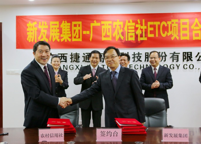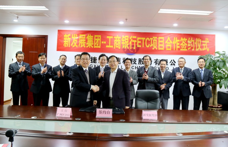 2016年3月2日、3月4日,集團公司分別與中國工商銀行廣西區(qū)分行、廣西農(nóng)村信用社簽訂ETC項目合作協(xié)議,標志著新發(fā)展集團多措并舉全面全力推廣拓展ETC項目又邁出了堅實的步伐。