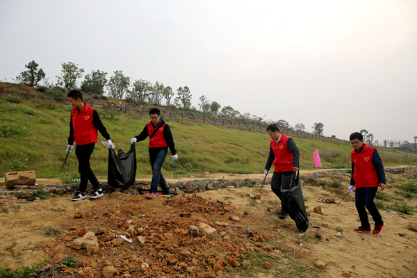 3月3日上午,廣西交通設(shè)計(jì)院團(tuán)員代表聯(lián)合共青團(tuán)南寧市青秀區(qū)委、青秀區(qū)環(huán)保局共80多人,到邕江江岸開展“保護(hù)母親河,共建美好南寧”活動(dòng)。青年志愿者在孔廟集合之后,大家拿著垃圾袋、火鉗、手套等工具三五成群沿江開展環(huán)衛(wèi)行動(dòng),利用手上的工具積極清理邕江邊的垃圾,不管是陳舊的食品袋還是廢棄的漁網(wǎng)都被清理帶走。大家懷著“學(xué)習(xí)雷鋒,保護(hù)母親河”的信念,在邕江邊奔走忙碌。經(jīng)過一個(gè)多小時(shí)的奮戰(zhàn),共清理出垃圾200多袋,清理出約