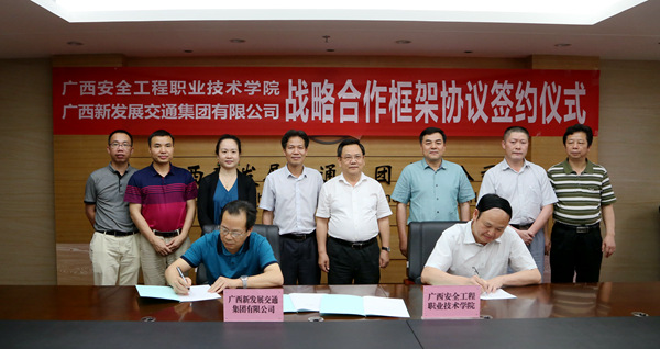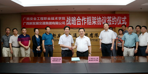 黎志逘祝賀雙方正式建立戰(zhàn)略合作伙伴關(guān)系。他說,廣西安全工程職業(yè)技術(shù)學(xué)院是經(jīng)廣西壯族自治區(qū)人民政府批準(zhǔn)成立、教育部備案的公辦全日制普通高等職業(yè)學(xué)院,隸屬?gòu)V西壯族自治區(qū)安全生產(chǎn)監(jiān)督管理局管理,是廣西唯一一所、全國(guó)第三所專門培養(yǎng)安全類高等專業(yè)技術(shù)人才的現(xiàn)代化職業(yè)學(xué)院。為了深入貫徹黨的十八屆六中全會(huì)和習(xí)近平總書記、李克強(qiáng)總理關(guān)于安全生產(chǎn)工作的重要指示批示精神,推動(dòng)企業(yè)落實(shí)安全生產(chǎn)主體責(zé)任,在全社會(huì)凝聚弘揚(yáng)安全發(fā)展理念、支持安全生產(chǎn)的共識(shí),“十三五”期間乃至更長(zhǎng)一個(gè)時(shí)期,雙方將建立互信、互補(bǔ)、互援的戰(zhàn)略合作關(guān)系,開啟校企全面深入合作的新篇章。通過深入合作交流,促進(jìn)了廣西安全工程職業(yè)技術(shù)學(xué)院發(fā)展,提升了廣西新發(fā)展交通集團(tuán)有限公司在安全生產(chǎn)方面的實(shí)力,最終實(shí)現(xiàn)雙方的共贏。