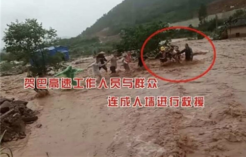 7月3日,廣西桂北地區(qū)連日遭受暴雨侵襲,鐘山至昭平高速公路項目多個場站被沖毀,駐地被洪水圍困,項目部立即啟動應(yīng)急救援預(yù)案,積極開展自救工作。在得知附近的源頭鎮(zhèn)群眾被洪水圍困后,項目工區(qū)經(jīng)理鄒穎林立刻放下整理好的物資,與其他員工一起沖進(jìn)洪水中拯救鄉(xiāng)民。項目部員工通過手拉手搭建起了生命通道,先后4次下水施救,最終成功轉(zhuǎn)移30多名受困群眾,其中包括5名小孩。