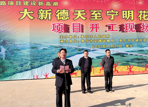 12月20日,崇左市大新德天至寧明花山公路舉行開(kāi)工儀式,集團(tuán)公司黨委書記、董事長(zhǎng)朱堅(jiān)和,集團(tuán)公司黨委副書記、副董事長(zhǎng)、總經(jīng)理唐咸秋,路橋工程集團(tuán)及設(shè)計(jì)院有限公司相關(guān)負(fù)責(zé)人參加了開(kāi)工儀式。