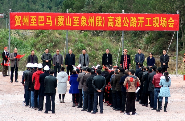 12月22日,集團公司賀州至巴馬高速公路(蒙山至象州段)(簡稱“蒙象高速”)在金秀縣召開開工現(xiàn)場會,標志著該項目正式開工建設(shè)。來賓市人民政府副市長韋平主持會議。