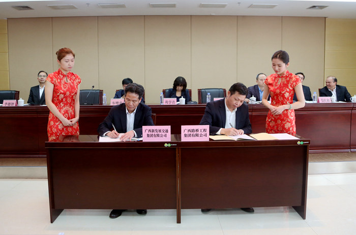 會后,自治區(qū)國資委副巡視員鞏學(xué)青與集團(tuán)公司黨委書記、董事長朱堅(jiān)和一同為集團(tuán)公司“廣西交通建設(shè)人才小高地”揭牌。
