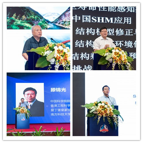圖為鄭皆連院士(左上)、歐進(jìn)萍院士(右上)、滕錦光院士(左下)、YangWang(美國)教授(右下)分享最新技術(shù)研究成果